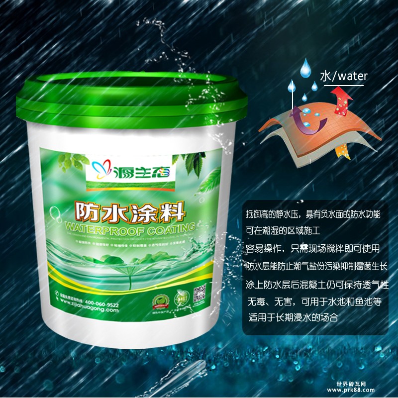 产品特点:1.不含防腐剂、耐水性好:活性聚合物物液的固体含量为100%,涂膜在水的长期作用下,也不会出现溶胀现象,耐水性优异。2.交链聚合反应:固化产品与水发生反应后固化成膜,不受环境温度、适度和通风状况的影响,保证工期。3.施工简便,适应性广:产品施工简便,可直接在干燥或无明水的潮湿基层下使用,而且粘接力强,适应性广。4.高固含量、高性价比:产品的固体含量达到92%以上,容重小,可一次性厚涂,综合造价低;5.生态环保,无毒无害:不含挥发物质和游离单体,与水反应,难燃,使用安全,环保无毒;6.使用范围广:涂膜的低温柔性可达-30℃,有很好的耐酸、碱、盐侵蚀性能,使用范围广。