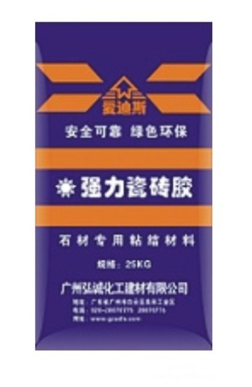 HC-26瓷砖胶是一种以水泥作为胶凝剂、添加高分子聚合物和无机粉料作保水剂、粘结剂而制成的新型瓷砖胶,也可适用于瓷砖的薄层粘结。本品由优质水泥、填料、合成聚合物和精选添加剂等配制而成,加入料粉重量的28%的水,充分搅拌5分钟即可使用。产品特点优点: 1.粘结强度高。粘结强度高约是纯水泥的2-3倍。2.施工性能好。本品具有良好的保水性、和易性、抗流坠性,可调整时间可达20分钟左右。3.节约成本。由于本粘结粉属于薄层粘结,可大大减少用量,节约成本。4.良好的耐久性。本品具有一定的柔韧性并且由于是薄层粘结,抵抗变形的能力增强,因此具有良好的耐久性。5.无毒、无异味、无污染、无腐蚀性,属环保产品。使用工艺: 1.基层处理:基层必须清除灰尘、油污等,以免影响粘结度。施工墙面要湿润(外干内湿)并保持一定的平整度,高低不平或粗糙的部位用水泥砂浆抹平。2.混合料制备:将本产品加入清水内搅拌成膏状,加水量为本产品重量的25%左右。注意先放水后放粉剂。搅拌时可使用人工或电动搅拌器。搅拌均匀后静置5分钟,视施工稠度要求加入适量的水再搅拌一次即可使用。3.粘贴方法:用齿形刮板均匀地将胶浆刮抹于工作面上,厚度因砖材而异。一般大理石粘结应在4~6mm,墙质砖粘结应在3~4mm,然后将瓷砖揉压摆正于上面即可。如瓷砖的背沟较深,除工作面抹浆外,还应在瓷砖背面抹浆。也可用传统方法将胶浆抹于瓷砖背面,再用力搓压摆正到基层上,刮去多余胶浆。4.粘砖后,可在调整时间内(约20~25分钟)移动调整,方便纠正。5.施工后自然凝固,24小时内免受水浸泡或冲刷。6.一次拌料量不宜过多,随拌随用,应在1小时内用完;已干结硬化的胶浆不应再使用。7.若加水过多使胶浆过稀,只能加本产品调节稠度,不应加水泥、砂或其它物质。▲本品包装袋是编织袋附内膜,25公斤/袋,置于托板上离地贮存,以免雨水浸湿,保证通风、干燥、避免日光直接照射。